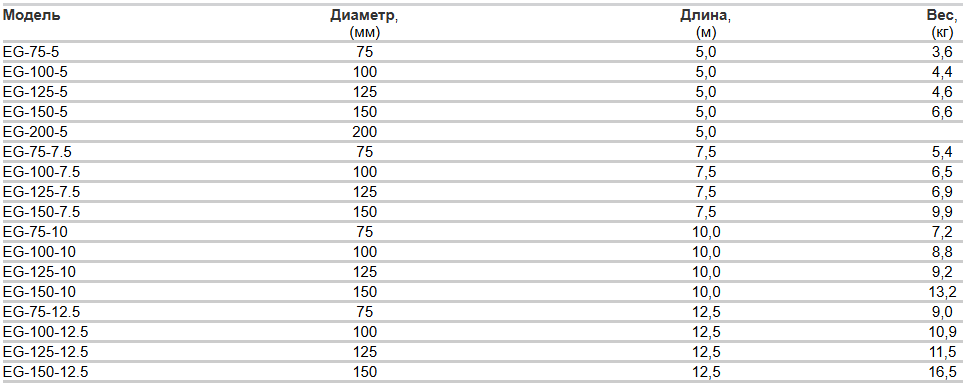 Указан внутренний диаметр шланга.