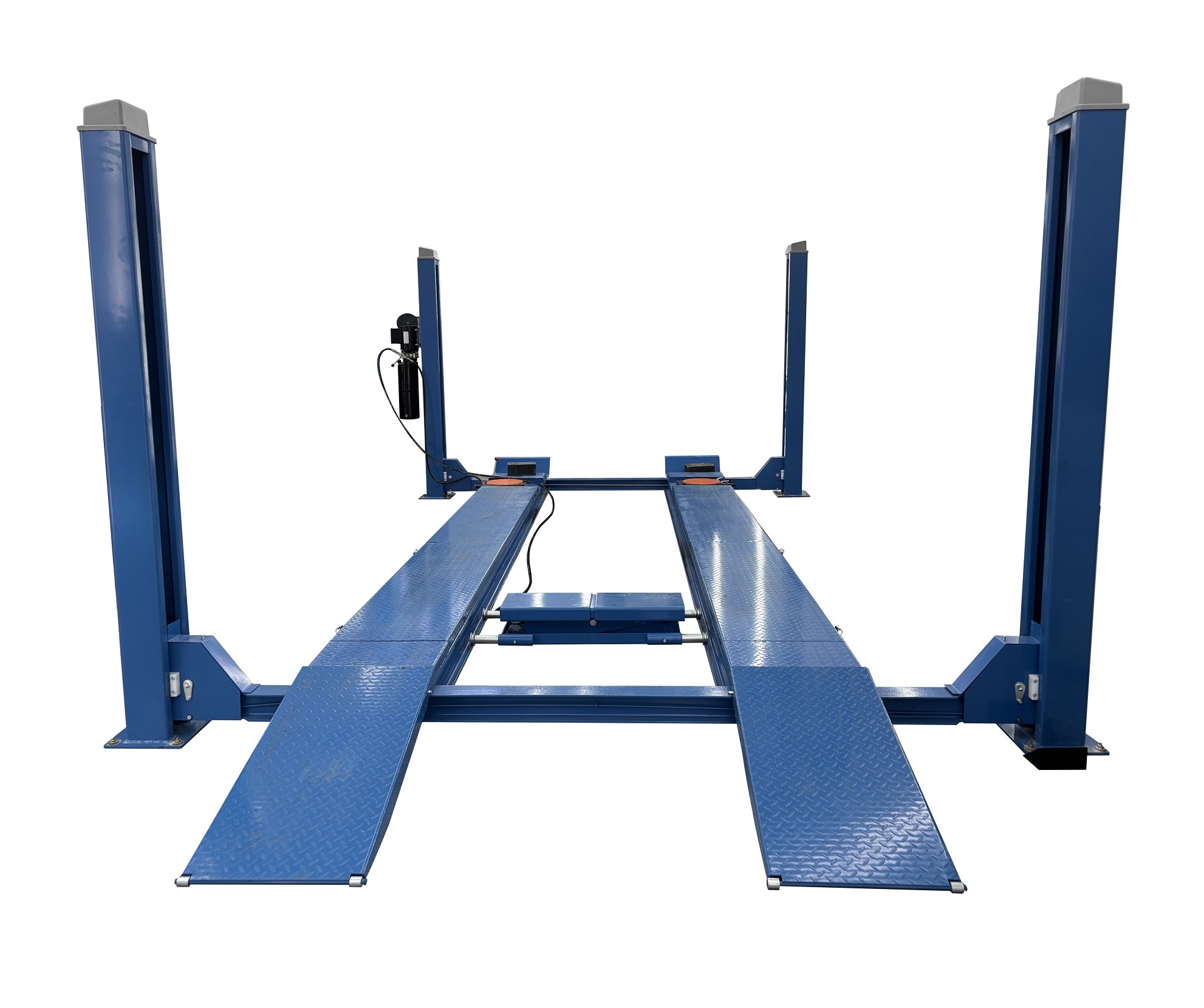Подъемник электрогидравлический четырехстоечный F4D-4 грузоподъемностью 4 тонны, предназначен для системы сход-развала схождения колес, оснащен местами для поворотных кругов и задними сдвижными платформами, оборудован гидравлической двухточечной траверсой грузоподъемностью 2 тонны встроенная в систему.